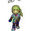 Green angled bangs |